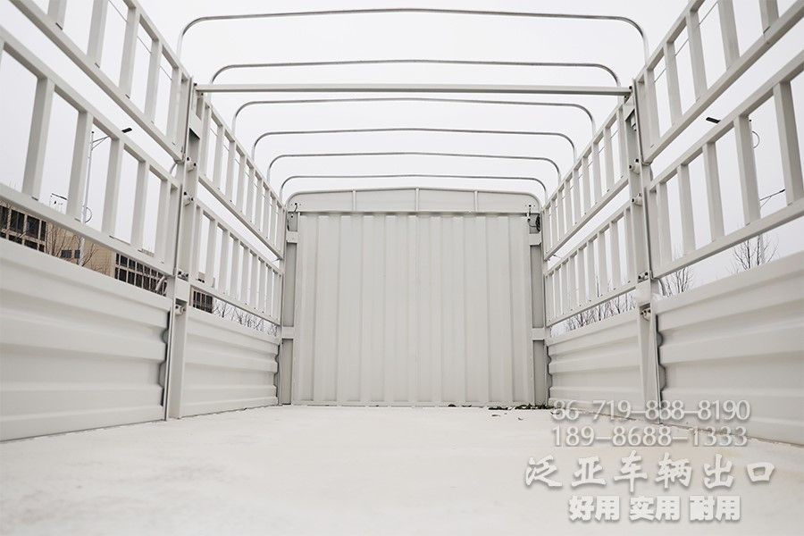 后车厢外观追求美观设计的同时、内部结构、车厢优质钢材的选材,都采用合理工艺先进行,严格按照国际标准焊接,车厢板是采用“工装夹具压制”成瓦棱型,强度韧性高,同时使自重更轻、仓栅式货车厢栏杆可升降、半拆、全拆,有实用方便、安全可靠等特点