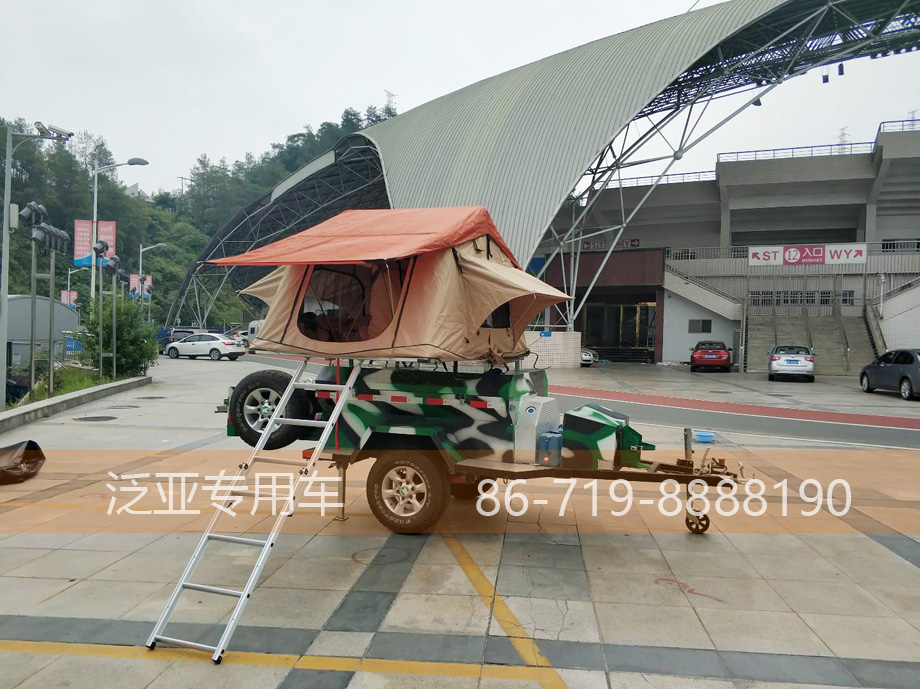 车顶配有一个折叠帐篷,驻车时可以展开,最多可容纳3人(2个成年人1个小孩)。驻车时需要把底盘支腿放下,使车更平稳。