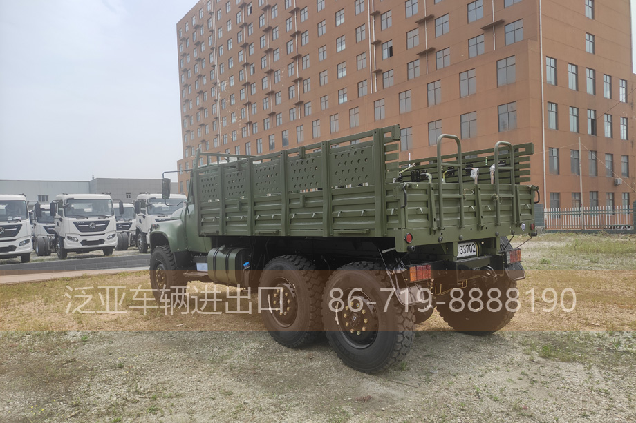车上装有冷启动系统、副油箱、机油桶、水桶、篷布篷杆、工具箱等军用附加装置,可在-41℃环境温度下能顺利启动