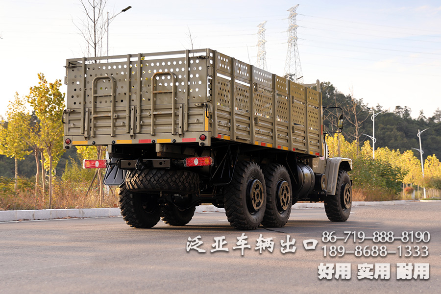 东风六驱加高货箱版210马力越野卡车是一款综合性能十分优秀的卡车,该车带有冷启动、防空灯、副油箱、工具箱等军用附加装置,整车在-41℃环境温度下能顺利启动。