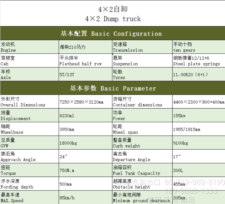 东风4*2自卸汽车_210马力自卸车工地拉土方石方_16方渣土运输车出口