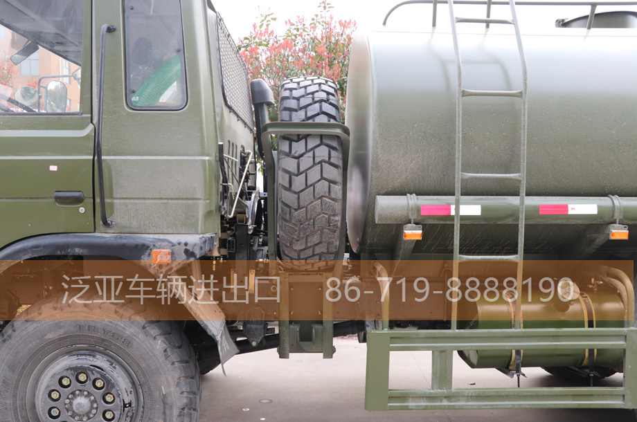 | 上装配置 | 后无平台,自流阀及消防接头各一个,水管与罐体通长2根。罐内玻璃钢内涂,左后方自吸自排。罐体厚4mm |
