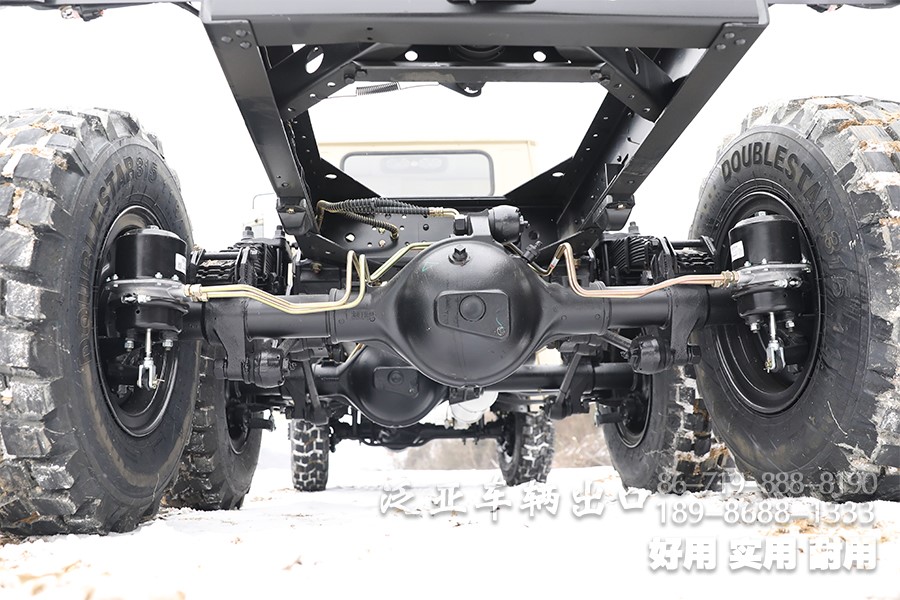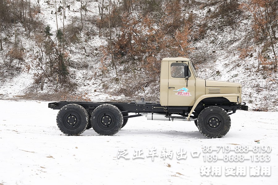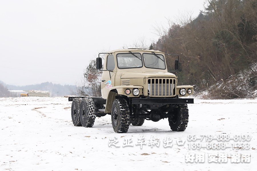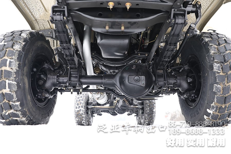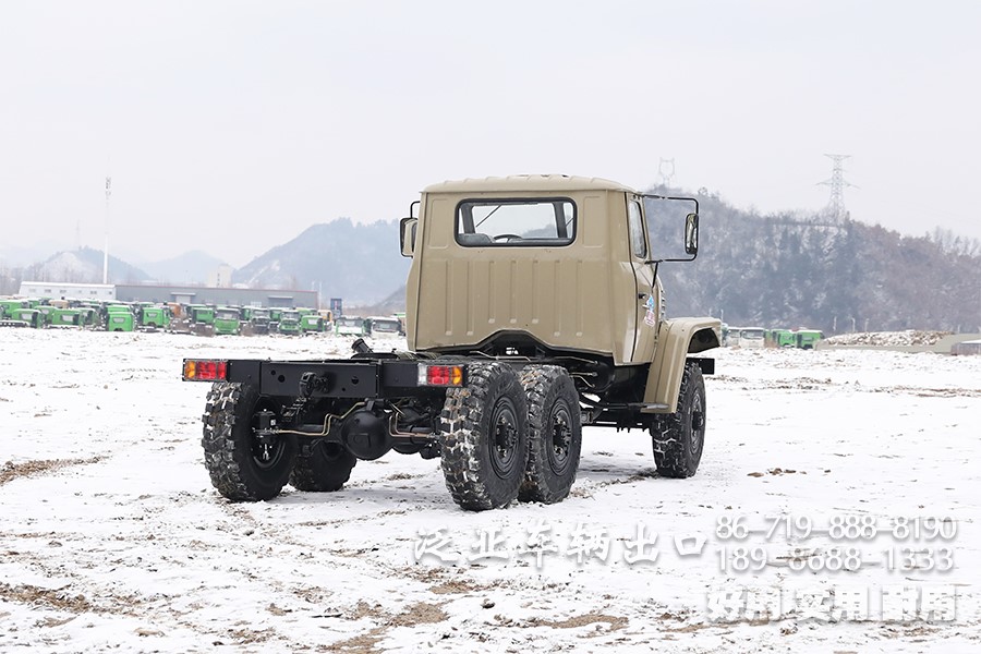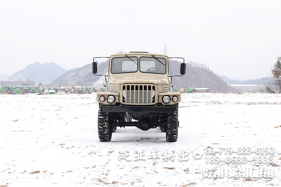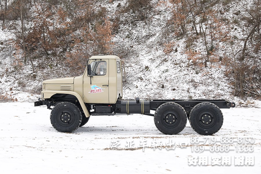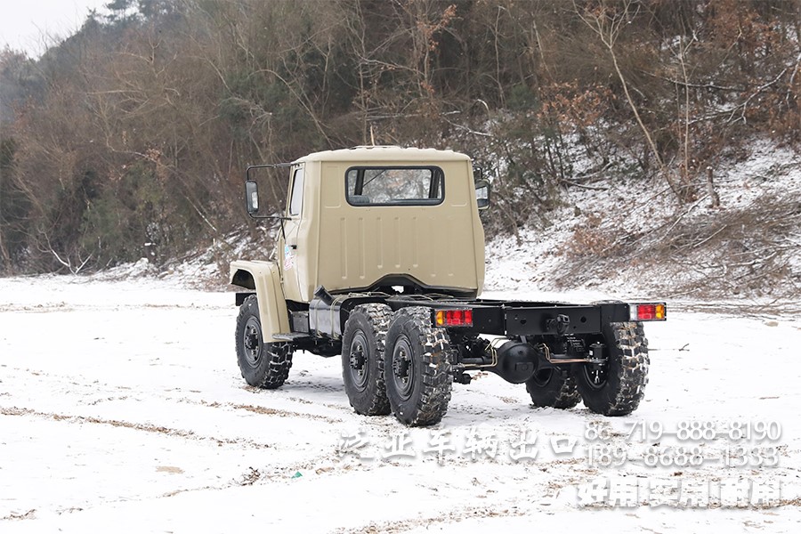特殊配置 驾驶室后车窗带有防护网,6x6全轮驱动,专利设计,专为恶劣路况设计,可选装前置绞盘,牵引力为44100
