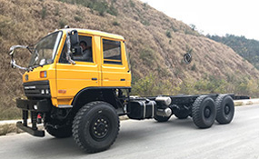 六驱越野卡车底盘153双排6X6的突出优点是:载重量大,越野本领强。可在路面不良的道路或原野、山区、坡地、沼泽、沙漠和冰雪等无路面地区行驶。