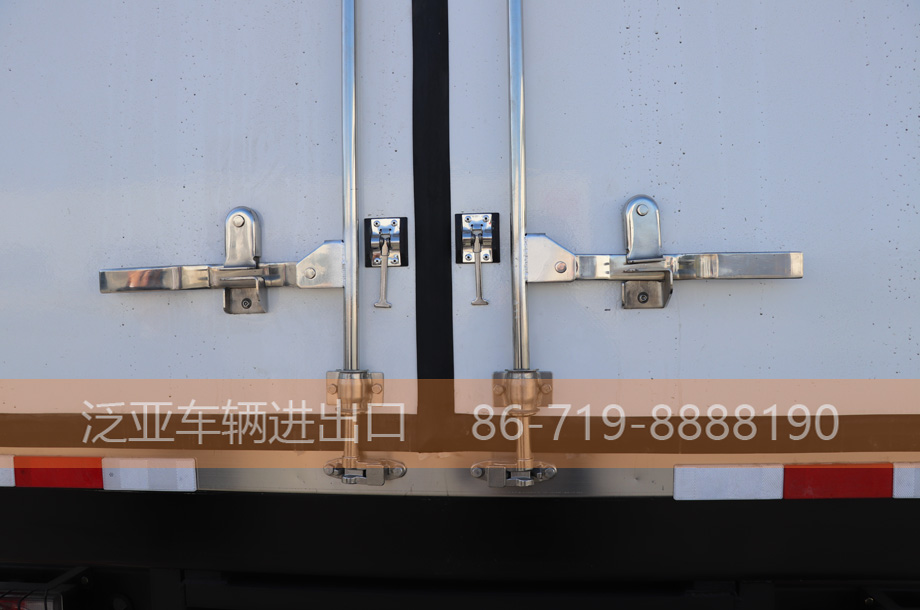 上装配置 厢体采用内外优质玻璃钢,中间填充7.5CM厚保温材料,铝合金型材包边,门框,锁件为不锈钢